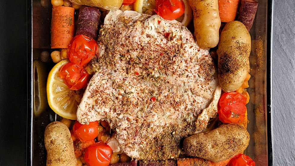 Za’atar Chicken is a dish that proves a spice blend can transform everyday ingredients into something memorable. The citrusy brightness of sumac, the warmth of sesame, and the herbal depth of thyme wrap around tender chicken and garden vegetables. This creates a one-pan meal that feels both rustic and refined. It’s a recipe that invites improvisation—garlic, feta, or extra lemon can all join the party—while keeping the focus on Za’atar's timeless versatility.